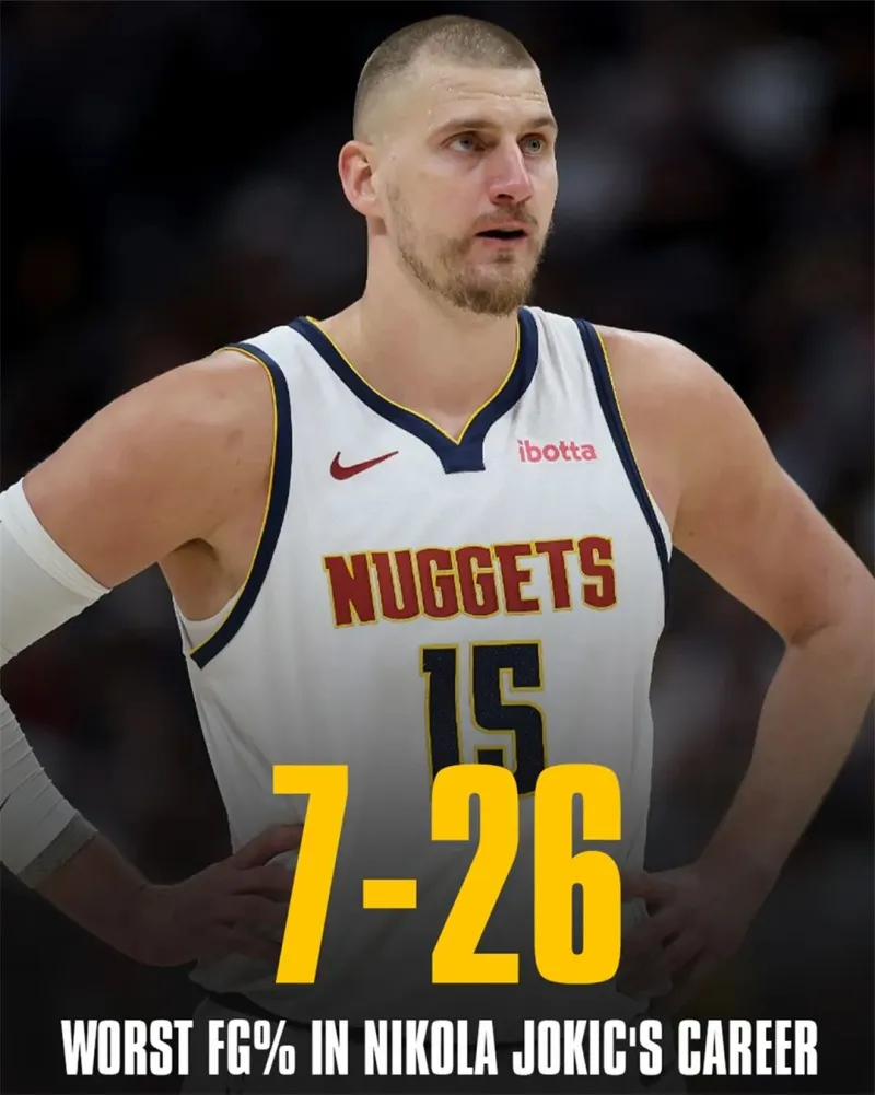 大概是什么概念呢?约基奇本场投篮26中7,命中率仅为26.9%,刷新了个人生涯季后赛的最低纪录。