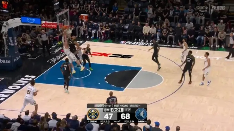 需要说的是,上一场G2,掘金不敌森林狼,当时约基奇的表现就不是很好:全场20中8,三分7中1,只得到24分15篮板8助攻。